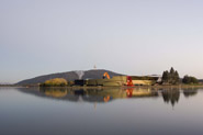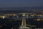 pre-dawn photo of Parliament House taken from Mt Ainslie