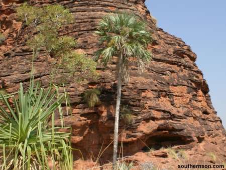 palm at the foot of striking rock wall at Jarrnarm on the way to Nigli Gap