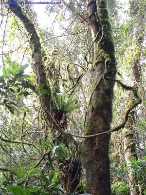 lantana, palms and moss on rainforest trees