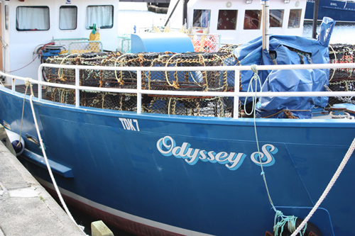 The pots are thrown over the Continental Shelf to a depth of 1 kilometre and left out for a week(lobster pots are left out for 2-20 hrs)