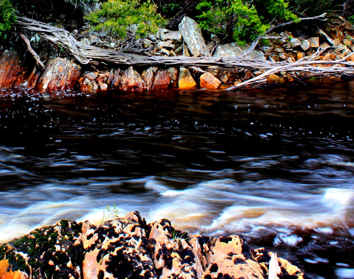 Photo of Water Weathered Log on Bank of the Arthur Riverin The Tarkine Wilderness, Tasmania, Australia