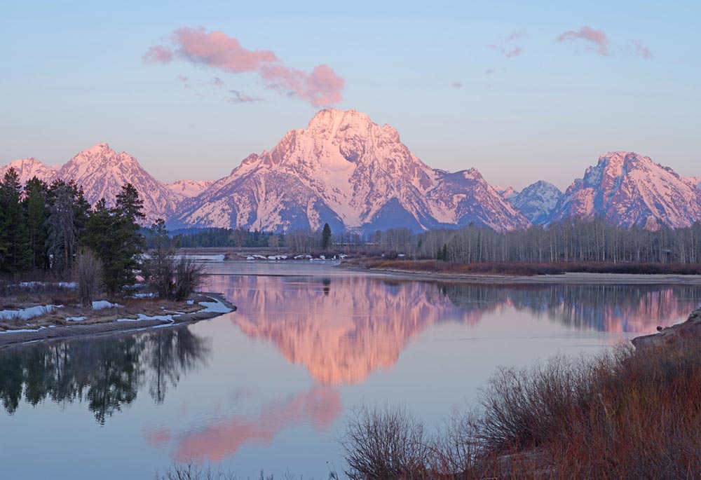 "Photo of Mount Moran in Winter at Oxbow Bend, Teton national Park, Wyoming" |